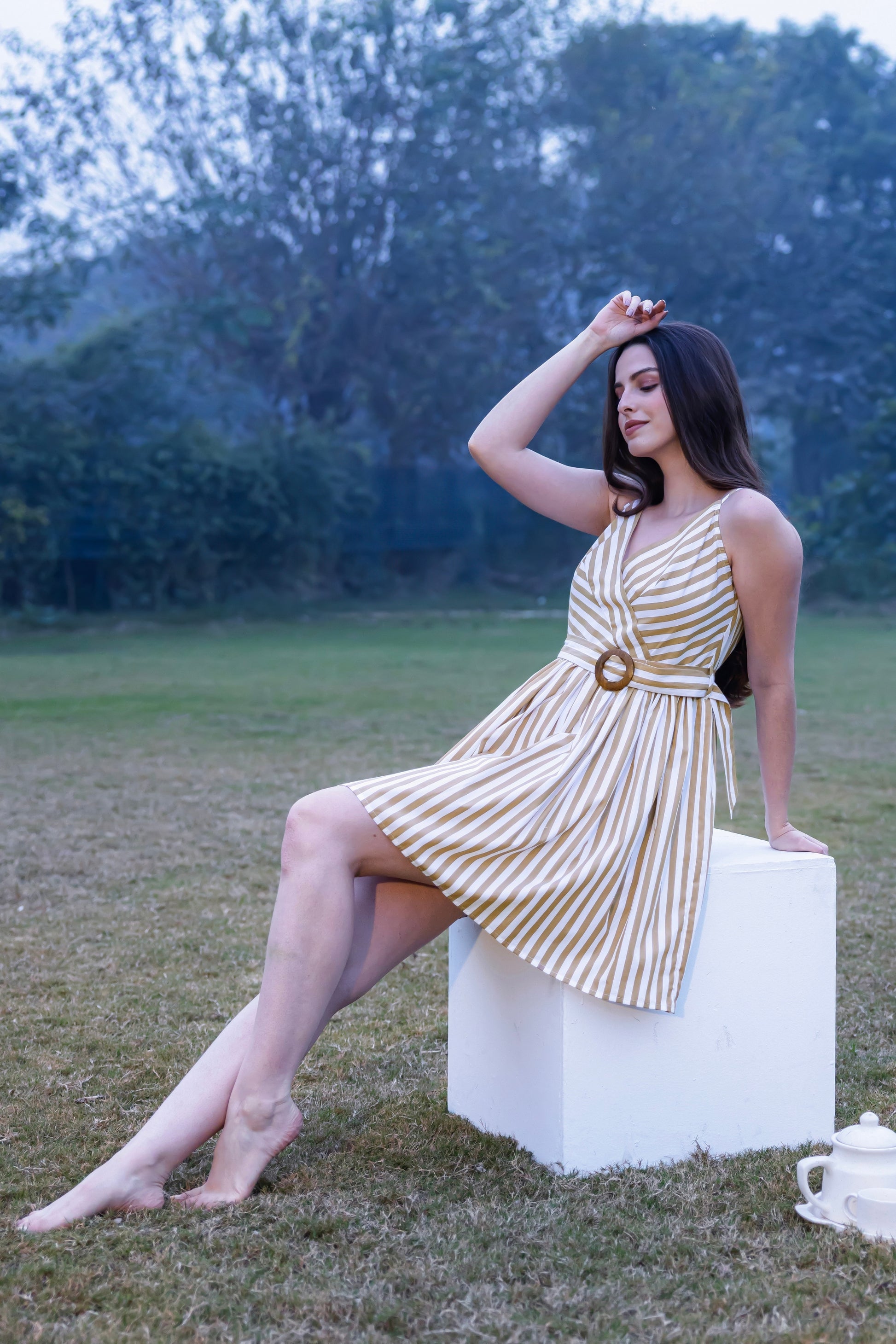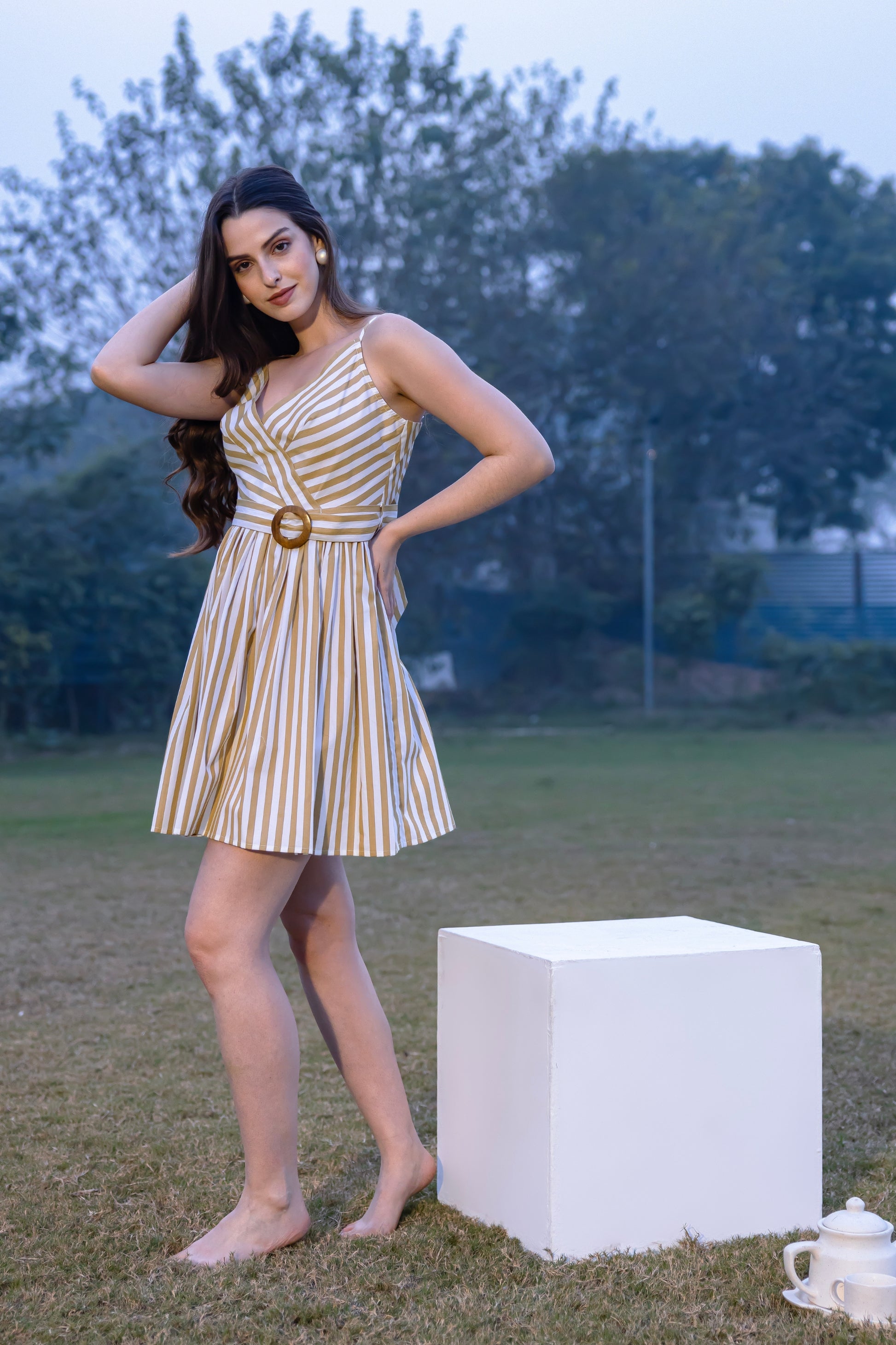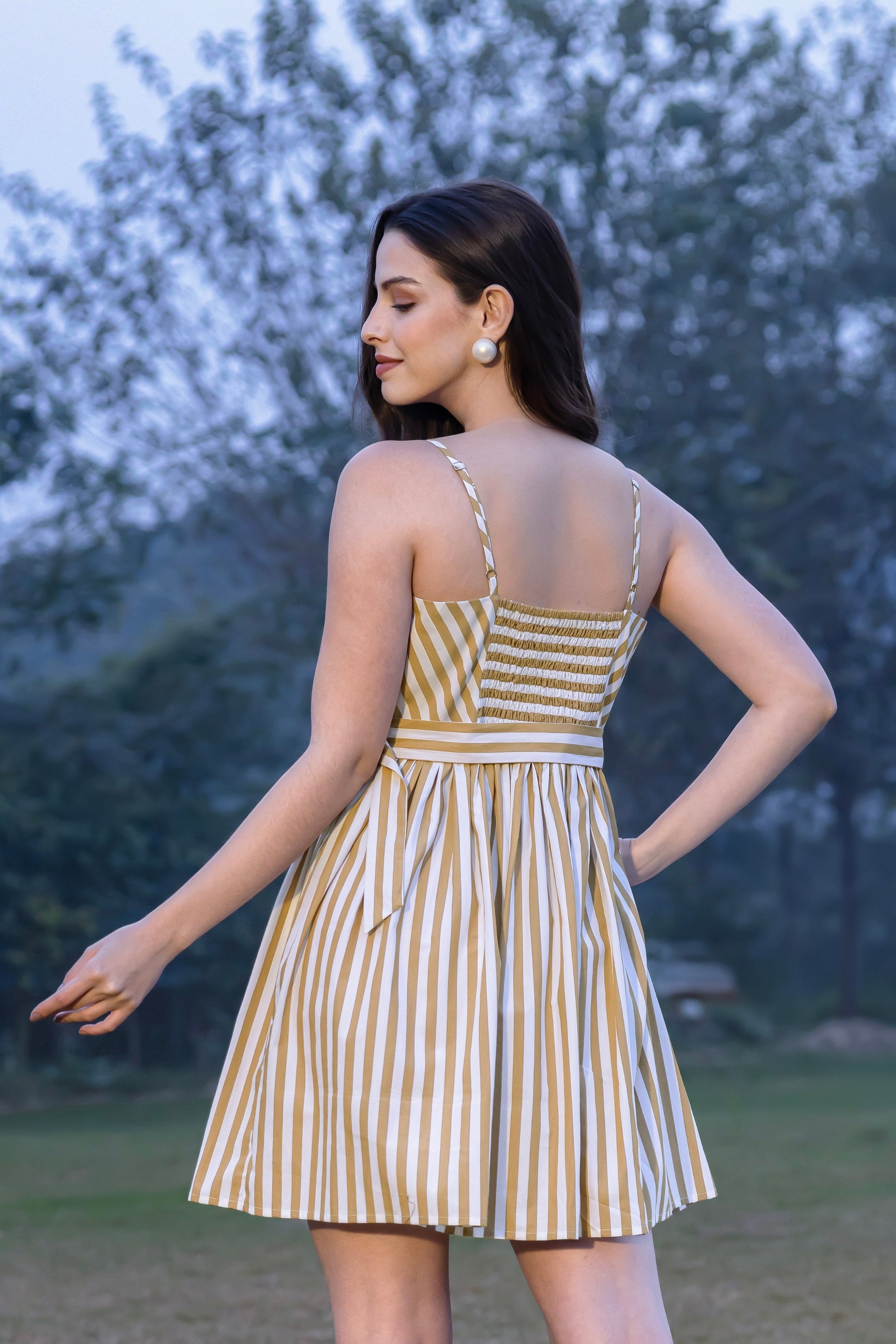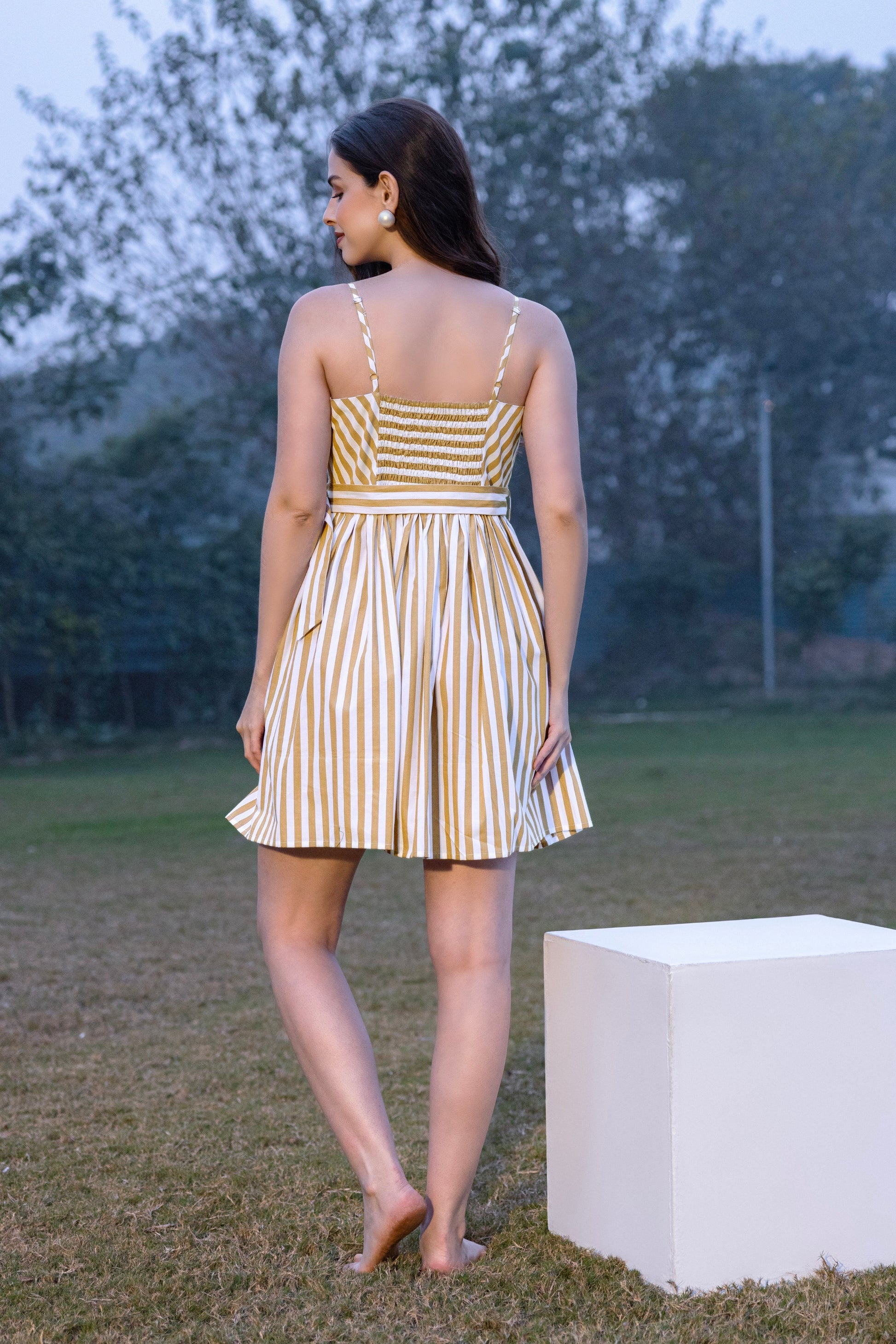 Elevate your social outings with our Riviera Elegance Chic Mini Dress, crafted from 100% cotton. It features a classic collar and front button design for timeless appeal, with delicate gathers at the waist that accentuate your silhouette with sophistication. A slight flare at the hem adds a playful touch, making it perfect for any occasion where style meets comfort.