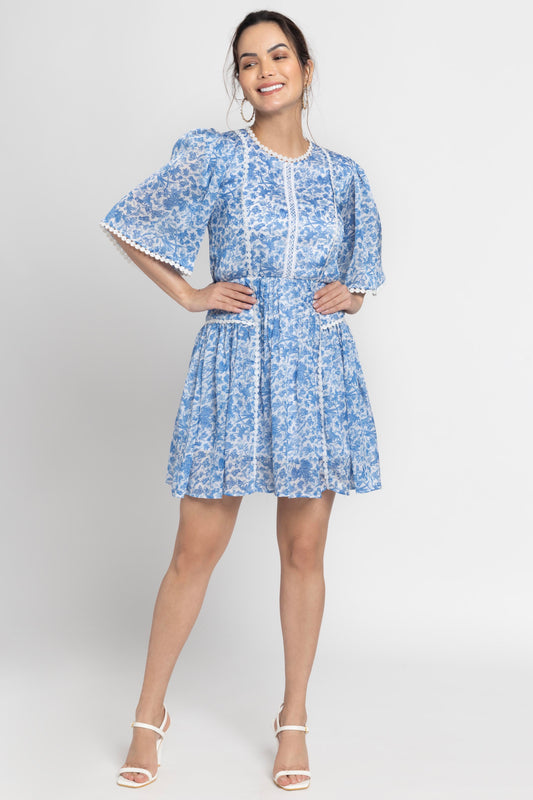Misty Floral Blue Mini Dress