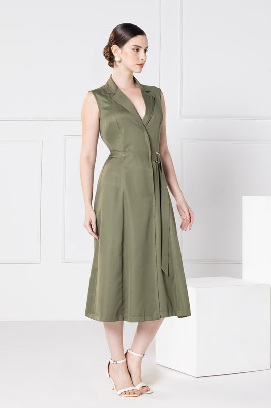 Olive Elegance Midi Dress