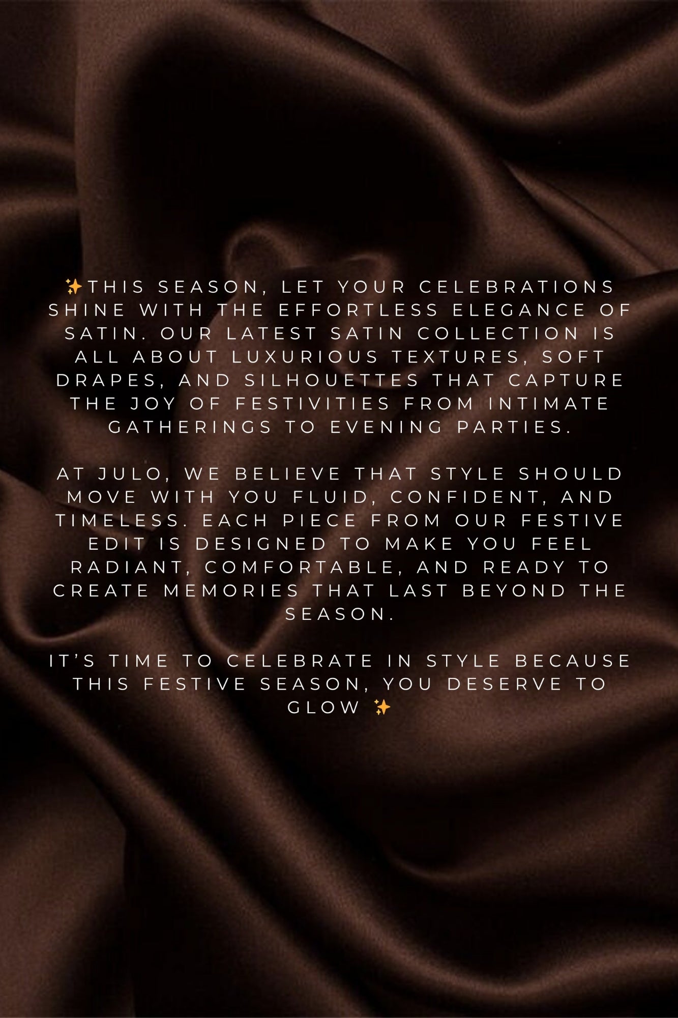 The Choco Lustre Cowl Midi Dress brings a refined touch to effortless elegance. Crafted from luxe satin in a rich chocolate-brown hue, it features a soft cowl neckline and a flattering fitted silhouette that drapes beautifully on the body. The sleeveless design and midi length make it a versatile choice for both formal and evening occasions — timeless, minimal, and undeniably sophisticated.